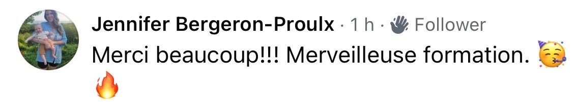 J'ai obtenu mes certifications en petite enfance à l'Institut de Coaching familial, en parentalité positive avec Isabelle Filiozat. J'ai également récemment entamé une formation à l'Institut Neufeld. Bref, je suis une geek du développement de l'enfant.